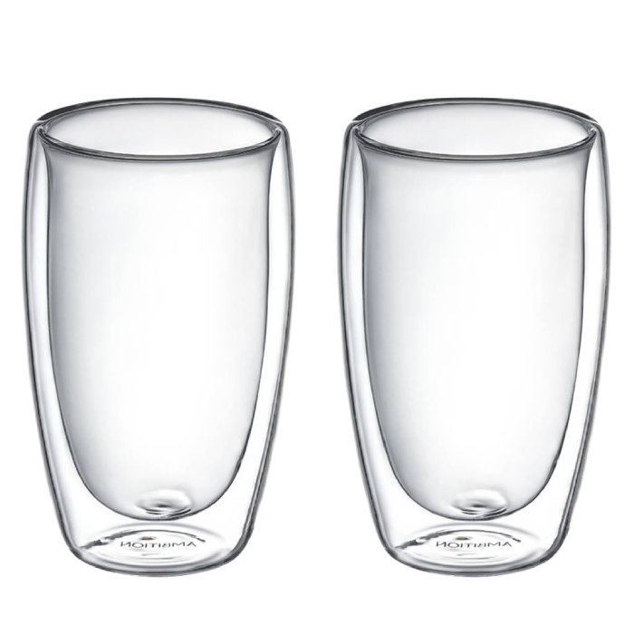 Zestaw dwóch szklanek termicznych Ambition Doble o pojemności 450 ml. Naczynia wykonane są ze szkła borokrzemowego i mają podwójne ścianki, które chronią dłonie przed poparzeniem. Szklanki nadają się do podania zarówno zimnych, jak i gorących napojów, i z powodzeniem mogą być używane w kuchenkach mikrofalowych oraz zmywarkach do naczyń. Szklanki termiczne Ambition Doble o pojemności 450 ml najlepiej sprawdzą się do przygotowania kawy latte macchiato.