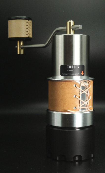 Kazak Tura jest wyposażony w sożkowe żarna Italmill wykonane ze stali węglowej we Włoszech. Specjalna konstrukcja żaren gwarantuje doskonała precyzję mielenia. Młynek do kawy Kazak Tura posiada skórzaną koszulę w kolorze beżowym, która nadaje mu niezwykłego designu. Kawa mielona jets bezpośrednio do pojemnika, który jest montowany do młynka.