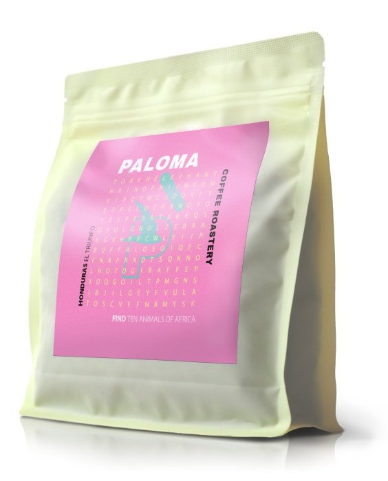 Paloma Honduras El Triunfo to jasno palona arabika Single Origin z Hondurasu przeznaczona do przelewowych metod parzenia. Tworzą ją ziarna odmiany Parainema, które rosną na wysokościach 1270-1300 m n.p.m. w regionie Occidente i przechodzą obróbkę metodą natural. Kawa otrzymała 87,5 punktów w teście SCA, co czyni ją kawą segmentu specialty.