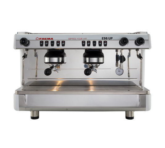 Faema E98 UP to profesjonalny ekspres do kawy, który świetnie sprawdzi się w kawiarni i restauracji. Ekspres został wyposażony w 2 grupy, a opcjonalnie może posiadać w podwyższoną grupę (Tall Cup) i podświetlenie grup. Ekspres Faema E98 UP S2 posiada funkcje, które zwiększają wydajność urządzenia i pozwalają przygotować doskonałe espresso. 2 profesjonalne dysze pary wodnej i komplet przycisków obsługi znajdujące się przy każdej grupie zwiększają komfort pracy baristy, dlatego Faema E98 to idealny ekspres do gastronomii. Ekspres jest dostępny w trzech wersjach kolorystycznych - białej, czarnej i czerwonej.