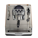 Faema Faemina Classy to atrakcyjny, jednogrupowy ekspres do kawy wyposażony w system GTI, dyszę do spieniania mleka, wylewkę gorącej wody i opcjonalnie w system automatycznego spieniania mleka Auto Steam. Faemina Classy to ekspres ciśnieniowy do domu, który jest dostępny w 2 wersjach kolorystycznych: satynowa z polerowanym aluminum oraz czarna z polerowanym aluminum.