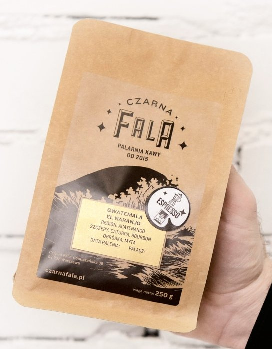 Czarna Fala Gwatemala El Naranjo to średnio palona arabika Single Origin z Gwatemali, która jest przeznaczona do ciśnieniowych metod parzenia. Tworzą ją ziarna odmiany Caturra i Bourbon rosnące w regionie Acatenango, które przechodzą obróbkę na mokro. Czarna Fala Gwatemala El Naranjo doskonale sprawdzi się do przygotowania w ekspresach kolbowych, ale zachwyci również użytkowników kawiarek.