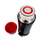 Czarny termos Casno Vulcano ma pojemność 2100 ml i posiada zamknięcie, które zapewnia stuprocentową szczelność. Nakrętka termosu spełnia jednocześnie rolę kubka, a zamontowana rączka gwarantuje pewny chwyt. Dzięki regulowanemu paskowi możemy przymocować go do plecaka lub torby.