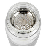 Szklana butelka na wodę Casno Michigan ma pojemność 600 ml i z łatwością zmieści się w każdej torbie lub plecaku. Szara opaska z polipropylenu sprawia, że butelka pewnie trzyma się w dłoni i się nie wyślizguje. Metalowe sitko może posłużyć nam do picia herbaty liściastej, ale sprawdzi się również do przechowywania w butelce wody z owocami i miętą.
