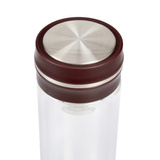 Szklana butelka na wodę Casno Erie ma pojemność 320 ml i z łatwością zmieści się w każdej torbie lub plecaku. Dołączony do butelki filtr pozwala przechowywać w niej herbatę liściastą lub wodę z owocami i miętą. W zestawie z butelką znajduje się materiałowy pokrowiec, który zwiększa ochronę butelki przed stłuczeniem.