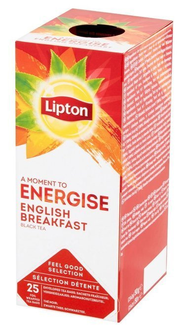 Czarna herbata English Breakfast producenta Lipton to kompozycja czarnych herbat, tworzących wyrazisty i mocny napar o bogatym smaku i aromacie. Szczelnie zapakowana w foliowe torebki herbata, na długo zachowuje swoje cenne aromaty.