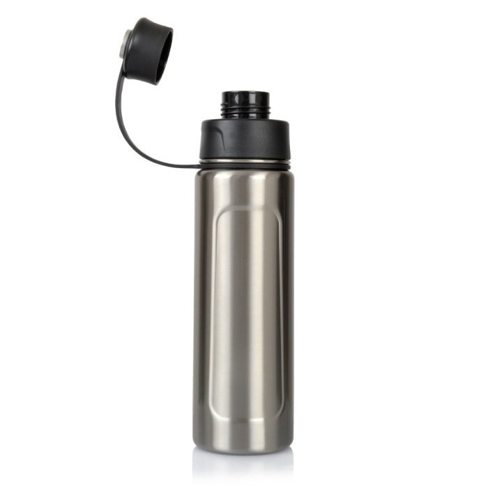 Stalowa butelka termiczna Casno Logan ma pojemność 1000 ml i może nam posłużyć w trakcie treningu na sali oraz w plenerze. Odkręcana nakrętka ma dodatkowe zamknięcie i zapewnia stuprocentową szczelność, dlatego nie musimy obawiać się o rozlanie napoju w plecaku. Wbudowane sitko doskonale sprawdzi się w trakcie picia wody z owocami i miętą.