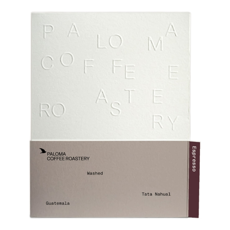 Paloma Gwatemala Tata Nahual to średnio palona arabika Single Origin z Gwatemali przeznaczona do ekspresów ciśnieniowych. Tworzą ją ziarna odmian Catimor, Catuai i Typica, które rosną na wysokościach 1800-2000 m n.p.m. w regionie Acatenango i przechodzą obróbkę na mokro. Kawa otrzymała 83,75 punktów w teście SCA, co czyni ją kawą segmentu specialty.