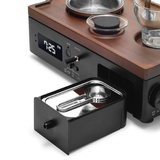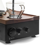 Ekspres do kawy Joy Resolve Barisieur zdecydowanie wyróżnia się atrakcyjnym designem oraz solidnym wykonaniem. Czarna obudowa ekspresu doskonale współgra z tacą wykonaną z drewna orzechowego, a całość świetnie dopełniają stalowe i szklane elementy. Szkło borokrzemowe zastosowane w ekspresie jest ręcznie dmuchane przez mistrzów rzemiosła, a drewniana taca jest precyzyjnie obrabiana z jednego kawałka, a następnie wykańczana matowym lakierem odpornym na plamy.