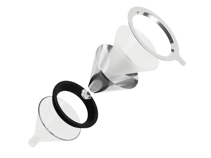 • Materiał: Szkło borokrzemowe, drewno orzechowe, ABS, PET, polerowana stal nierdzewna, silikon