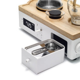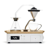 Ekspres do kawy Joy Resolve Barisieur zdecydowanie wyróżnia się atrakcyjnym designem oraz solidnym wykonaniem. Biała obudowa ekspresu doskonale współgra z tacą wykonaną z drewna orzechowego, a całość świetnie dopełniają stalowe i szklane elementy. Szkło borokrzemowe zastosowane w ekspresie jest ręcznie dmuchane przez mistrzów rzemiosła, a drewniana taca jest precyzyjnie obrabiana z jednego kawałka, a następnie wykańczana matowym lakierem odpornym na plamy.