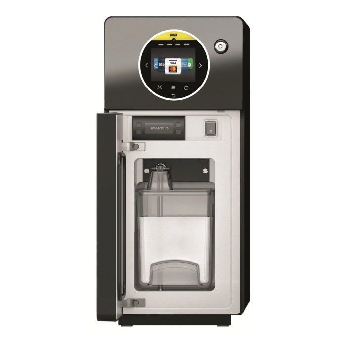 Chłodziarka do mleka o pojemności 3 l do ekspresu Franke A300. Lodówka Franke SU03 posiada funkcję czyszczenia Easy Clean i opcjonalnie może być wyposażona w czytnik kart płatniczych. Chłodziarka ma tylko 200 mm szerokości i może być łączona z ekspresem tylko z jego lewej strony.