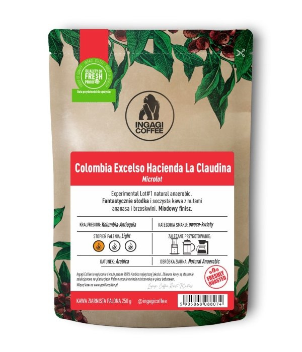 KAWA ZIARNISTA Ingagi Coffee Colombia Excelso Hacienda La Claudina 250G