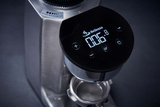 Młynek posiada 2 tryby pracy, które ustawiamy przy pomocy przełącznika. W pozycji 2 kawę mielimy na żądanie, ale po przełączeniu na pozycję 1 włącza się wyświetlacz umieszczony nad wysypem kawy. Możemy ustawić na nim czas mielenia dla pojedynczej oraz podwójnej dozy. Mielenie uruchamia się po wciśnięciu kolbą przycisku znajdującego się pod wysypem kawy.