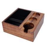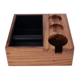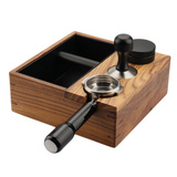 Drewniana stacja baristy, dzięki której zadbasz o higienę i porządek wokół swojego ekspresu do kawy. Stacja jest wyposażona w odbijak do kawy ze zbiornikiem na fusy, a także posiada miejsce przeznaczone dla kolby ekspresu i tampera. Drewniana stacja nie tylko jest praktyczna i pozwala zorganizować kącik kawowy, ale także świetnie się prezentuje i będzie ozdobą w każdej kuchni.