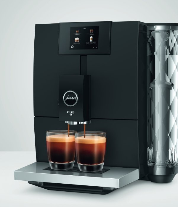 Model Jura ENA 8 (EC) w odróżnieniu od wersji (EB) został wyposażony w funkcję Two Cup, która pozwala przygotować 2 kawy czarne lub espresso jednocześnie. Dodatkowo Technologia Gładkiej Pianki zapewnia lekką i puszystą piankę do kaw mlecznych.