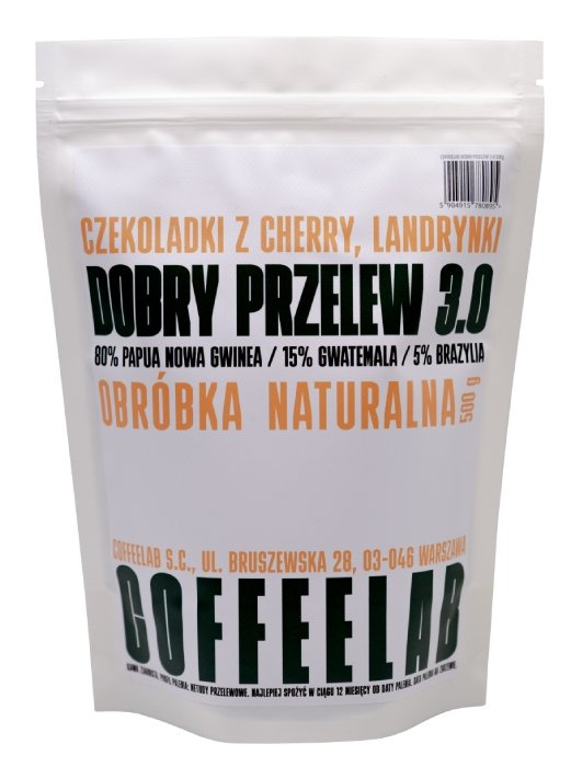 Coffeelab Dobry Przelew 3.0 charakteryzuje się przyjemnie słodkim smakiem z wyczuwalną nutą czekoladek z cherry i landrynek.