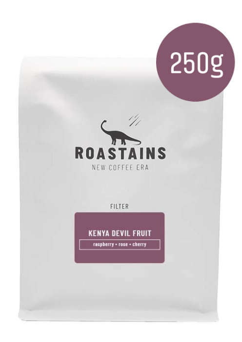 Roastains Kenia Devil Fruit to jasno palona arabika Single Origin z Kenii przeznaczona do przelewowych metod parzenia. Tworzą ją ziarna odmian SL28, SL34, Batian i Ruiru, które rosną na wysokościach 1600-1800 m n.p.m. w regionie Kitale. Kawa została poddana obróbce metodą natural, a w teście jakości otrzymała 88,5 punktów.