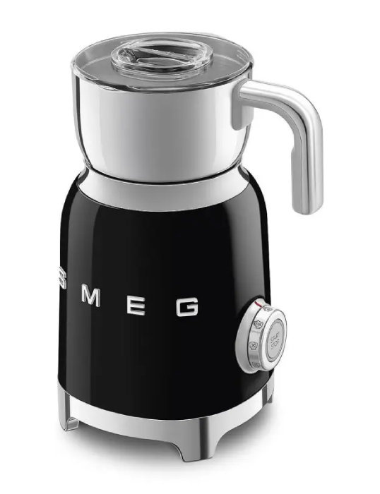 SMEG MFF11BLEU to włoskiej produkcji spieniacz do mleka, który doskonale sprawdzi się w każdym domu. Spieniacz należy do urządzeń linii 50's Style, która designem idealnie wpisuje się w estetykę lat 50. Trwała obudowa wykonana z lakierowanej stali w kolorze czarnym, chromowana podstawa z nóżkami antypoślizgowymi oraz opływowe kształty sprawiają, że spieniacz do mleka SMEG MFF01 będzie gwiazdą w każdej kuchni.