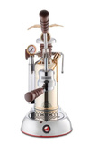 Dźwigniowy ekspres do kawy La Pavoni Esperto Competente LPLESC01EU wyróżnia się niecodziennym designem. Jego korpus w kolorze złotym doskonale komponuje się z mosiężną grupą w kolorze srebrnym. Drewniane uchwyty, charakterystyczny orzeł i podstawka w kolorze chromu świetnie wpisują się w cały projekt, dzięki czemu ekspres stanie się gwiazdą w Twoim domu.