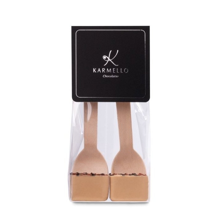 Wyśmienita biała czekolada z kremem piernikowym, umieszczona na dwóch patyczkach w kształcie łyżeczek tak, byś mógł rozpuścić ją w gorącym mleku i delektować się smakiem wyśmienitego napoju. Wybierz swoją ulubioną filiżankę. Napełnij ją gorącym mlekiem (150 ml). Umieść w filiżance Chocolate Stick i delikatnie zamieszaj. Czekolada stopniowo rozpuści się, tworząc aromatyczny przysmak.
