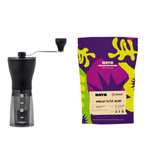 Wybierając nasz zestaw, kupujesz kawę ziarnistą oraz młynek HARIO Mini Mill Slim PLUS, który jest przeznaczony do przelewowych i alternatywnych metod parzenia. Młynek posiada ceramiczne żarna, które zapewniają równy i precyzyjny przemiał, a wygodna regulacja grubości mielenia pozwala na szybką zmianę ustawień pod różne metody parzenia. HAYB Filter Blend to wyjątkowo słodka kawa. W jej smaku dominuje czekolada, podkręcona przez nuty czerwonych i żółtych owoców.
