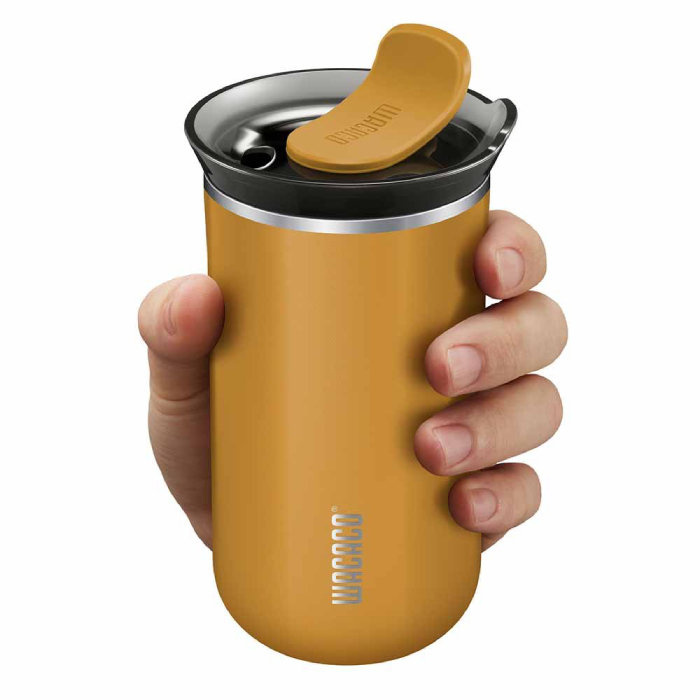 Kubek Wacaco Octaroma Lungo o pojemności 300 ml, w kolorze bursztynowej żółci wykonany jest ze stali nierdzewnej 304 i tworzywa sztucznego wolnego od szkodliwego BPA, który negatywnie wpływa na nasze zdrowie. Posiada podwójne ścianki z izolacją próżniową, dzięki czemu długo utrzymuje temperaturę napoju. Kubek jest szczelny, można go wrzucić do plecaka czy torebki i nic się z niego nie wyleje. Wyprofilowana wylewka ku górze sprawia, że wygodnie się z niego korzysta a napój nie wylewa się podczas picia. Pasuje do większości uchwytów w samochodzie. Kubek Wacaco Octaroma jest kompatybilny z przenośnymi ekspresami Wacaco - Pipamoka i Cuppamoka.