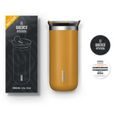 Kubek Wacaco Octaroma Grande o pojemności 435 ml, w kolorze bursztynowej żółci wykonany jest ze stali nierdzewnej 304 i tworzywa sztucznego wolnego od szkodliwego BPA, który negatywnie wpływa na nasze zdrowie. Posiada podwójne ścianki z izolacją próżniową, dzięki czemu długo utrzymuje temperaturę napoju. Kubek jest szczelny, można go wrzucić do plecaka czy torebki i nic się z niego nie wyleje. Wyprofilowana wylewka ku górze sprawia, że wygodnie się z niego korzysta a napój nie wylewa się podczas picia. Pasuje do większości uchwytów w samochodzie. Kubek Wacaco Octaroma jest kompatybilny z przenośnymi ekspresami Wacaco - Pipamoka i Cuppamoka.