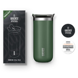 Kubek Wacaco Octaroma Grande o pojemności 435 ml, w kolorze butelkowej zieleni wykonany jest ze stali nierdzewnej 304 i tworzywa sztucznego wolnego od szkodliwego BPA, który negatywnie wpływa na nasze zdrowie. Posiada podwójne ścianki z izolacją próżniową, dzięki czemu długo utrzymuje temperaturę napoju. Kubek jest szczelny, można go wrzucić do plecaka czy torebki i nic się z niego nie wyleje. Wyprofilowana wylewka ku górze sprawia, że wygodnie się z niego korzysta a napój nie wylewa się podczas picia. Pasuje do większości uchwytów w samochodzie. Kubek Wacaco Octaroma jest kompatybilny z przenośnymi ekspresami Wacaco - Pipamoka i Cuppamoka.