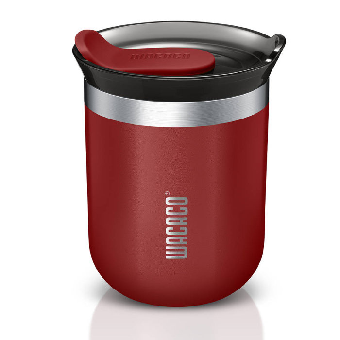 Kubek Wacaco Octaroma Classico o pojemności 180 ml, w kolorze głębokiej czerwieni wykonany jest ze stali nierdzewnej 304 i tworzywa sztucznego wolnego od szkodliwego BPA, który negatywnie wpływa na nasze zdrowie. Posiada podwójne ścianki z izolacją próżniową, dzięki czemu długo utrzymuje temperaturę napoju. Kubek jest szczelny, można go wrzucić do plecaka czy torebki i nic się z niego nie wyleje. Wyprofilowana wylewka ku górze sprawia, że wygodnie się z niego korzysta a napój nie wylewa się podczas picia. Pasuje do większości uchwytów w samochodzie. Kubek Wacaco Octaroma jest kompatybilny z przenośnymi ekspresami Wacaco - Pipamoka i Cuppamoka.