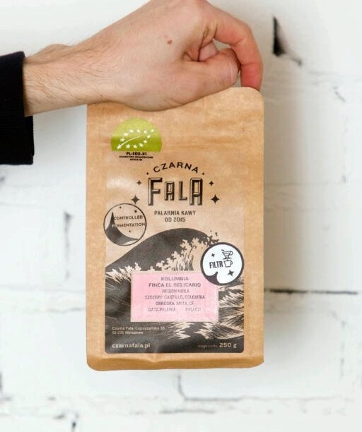 Czarna Fala EKO Kolumbia El Relicaro to jasno palona arabika Single Origin z Kolumbii przeznaczona do przelewowych metod parzenia. Jej ziarna odmian castillo i colombia pochodzą z regionu Huila, a w teście jakości uzyskały 87,25 punktów. Jest to micro-lot, czyli niewielka partia kawy z danej plantacji.