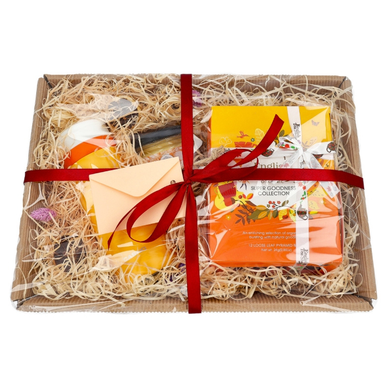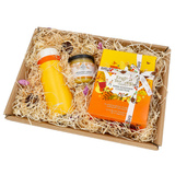 Zestaw prezentowy zamknięty jest w koszu wypełnionym atrakcyjnym materiałem zabezpieczającym oraz ozdobami. Zestaw jest zamknięty zgrzaną folią a dla maksymalnego bezpieczeństwa jest dodatkowo zapakowany w karton. Dzięki temu zestaw prezentuje się elegancko i jest od razu gotowy do wręczenia.