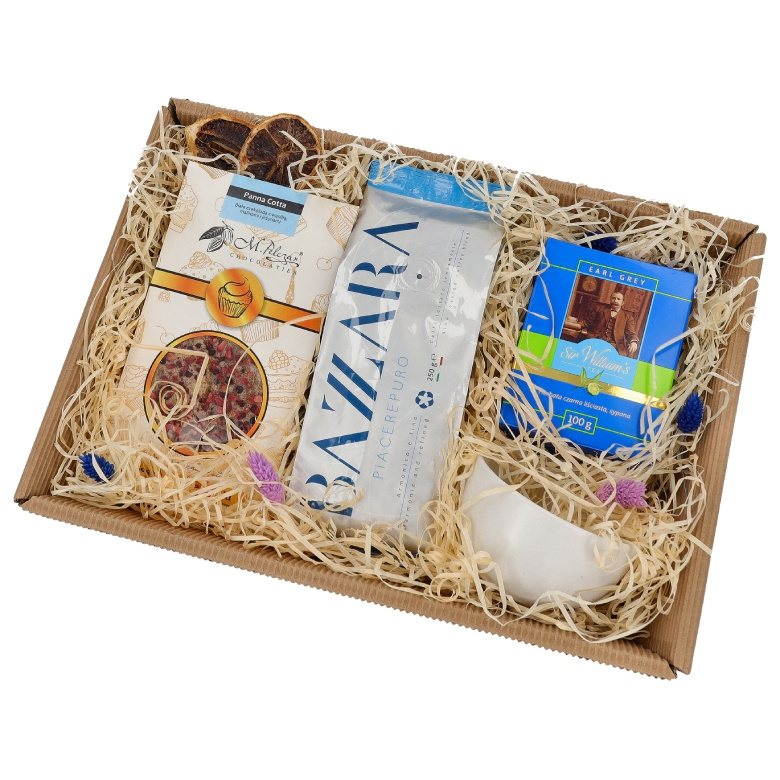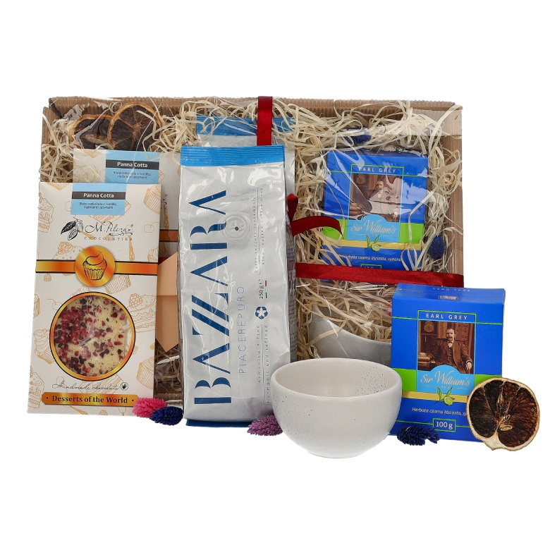 Zestaw prezentowy dla chłopaka z kawą, herbatą, czekoladą i kubkiem