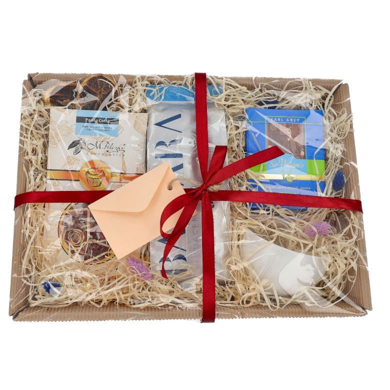 Zestaw prezentowy zamykany jest w karton wypełniony atrakcyjnym materiałem zabezpieczającym oraz ozdobami. Zamknięty zestaw dla maksymalnego bezpieczeństwa jest dodatkowo pakowany w karton. Dzięki temu zestaw prezentuje się elegancko i jest od razu gotowy do wręczenia.