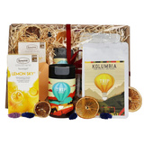 Zestaw prezentowy zamknięty jest w koszu wypełnionym atrakcyjnym materiałem zabezpieczającym oraz ozdobami. Zestaw jest zamknięty zgrzaną folią a dla maksymalnego bezpieczeństwa jest dodatkowo zapakowany w karton. Dzięki temu zestaw prezentuje się elegancko i jest od razu gotowy do wręczenia.