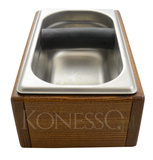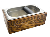 Wysokiej jakości odbijak krążków kawowych który w zestawie posiada kasetę ze stali nierdzewnej. Kaseta jest wyjmowalna dzięki czemu łatwo się opróżni cały odbijak. Kaseta na krążki kawowe jest obudowana litym drewnem bukowym. Obudowa jest lakierowana na brązowy kolor. Wymiary odbijaka to: 280 x 180 x 110 mm. Jest to doskonałe uzupełnienie dla każdego baristy.
