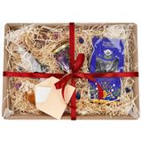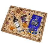Zestaw prezentowy zamknięty jest w koszu wypełnionym atrakcyjnym materiałem zabezpieczającym oraz ozdobami. Zestaw jest zamknięty zgrzaną folią a dla maksymalnego bezpieczeństwa jest dodatkowo zapakowany w karton. Dzięki temu zestaw prezentuje się elegancko i jest od razu gotowy do wręczenia.