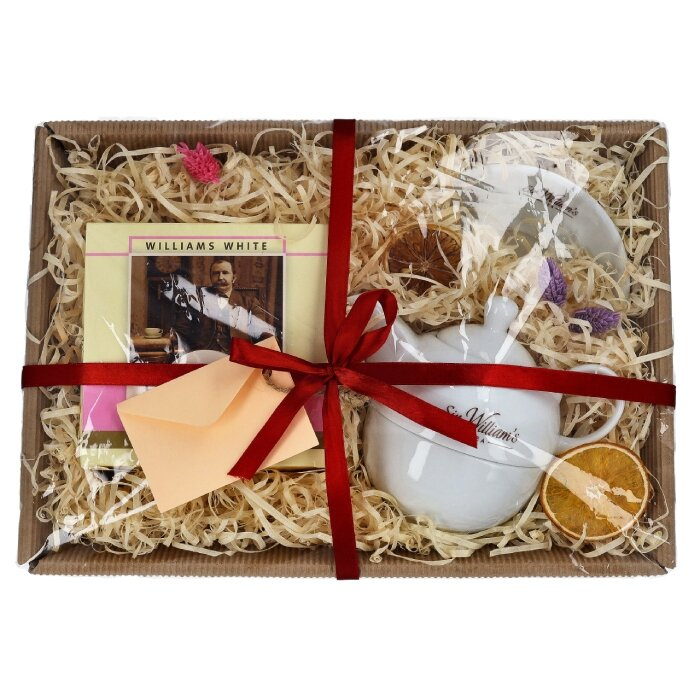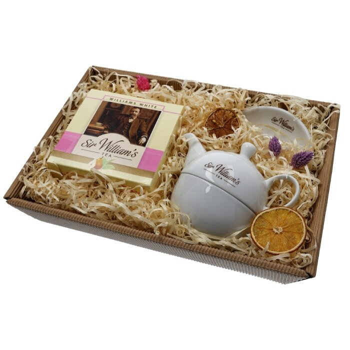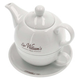 Porcelanowy zestaw do parzenia herbaty Sir Williams Duo zawiera czajnik i filiżankę, które są przystosowane do parzenia herbat Si William's. Dzbanek ma duże ucho, pozwalające na wygodne zamocowanie saszetki z herbatą. Dzbanek wykonany z wsokiej jakości porcelany ma pojemność 350 ml, filiżanka mieści 200 ml. Zestaw zawiera spodek. Zaparzenie jednej herbaty w dzbanku Sir William's Duo starczy na wypełnienie dwóch filiżanek. Idealna porcja na wspólne popołudnie przy aromatycznej herbatce!