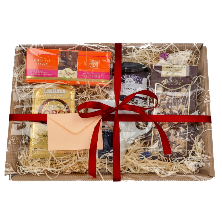 Zestaw prezentowy dla pracowników - Kawa, herbata, miód, czekolada i kubek