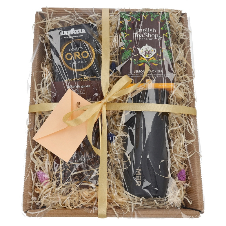 Zestaw prezentowy dla nauczyciela - Czarny kubek, kawa, herbata i czekolada