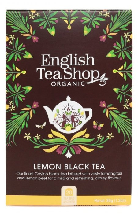 Czarna herbata English Tea Shop Lemon Black Tea 20x1,75g to ekologiczna herbata pochodząca z herbaciarni, która znana jest z niebanalnych połączeń smakowych i najwyższej jakości organicznych produktów. Lemon Black Tea to klasyczna czarna herbata z Cejlonu z dodatkiem skórki z cytryny i trawy cytrynowej. W środku znajduje się 20 saszetek herbaty.