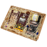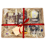 Zestaw prezentowy zamknięty jest w koszu wypełnionym atrakcyjnym materiałem zabezpieczającym oraz ozdobami. Zestaw jest zamknięty zgrzaną folią a dla maksymalnego bezpieczeństwa jest dodatkowo zapakowany w karton. Dzięki temu zestaw prezentuje się elegancko i jest od razu gotowy do wręczenia.
