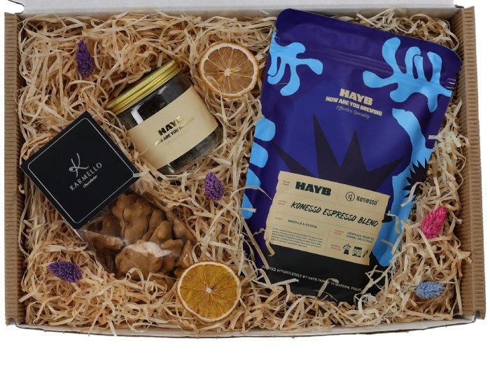Zestaw prezentowy zamykany jest w karton wypełniony atrakcyjnym materiałem zabezpieczającym oraz ozdobami. Zamknięty zestaw dla maksymalnego bezpieczeństwa jest dodatkowo pakowany w karton. Dzięki temu zestaw prezentuje się elegancko i jest od razu gotowy do wręczenia.