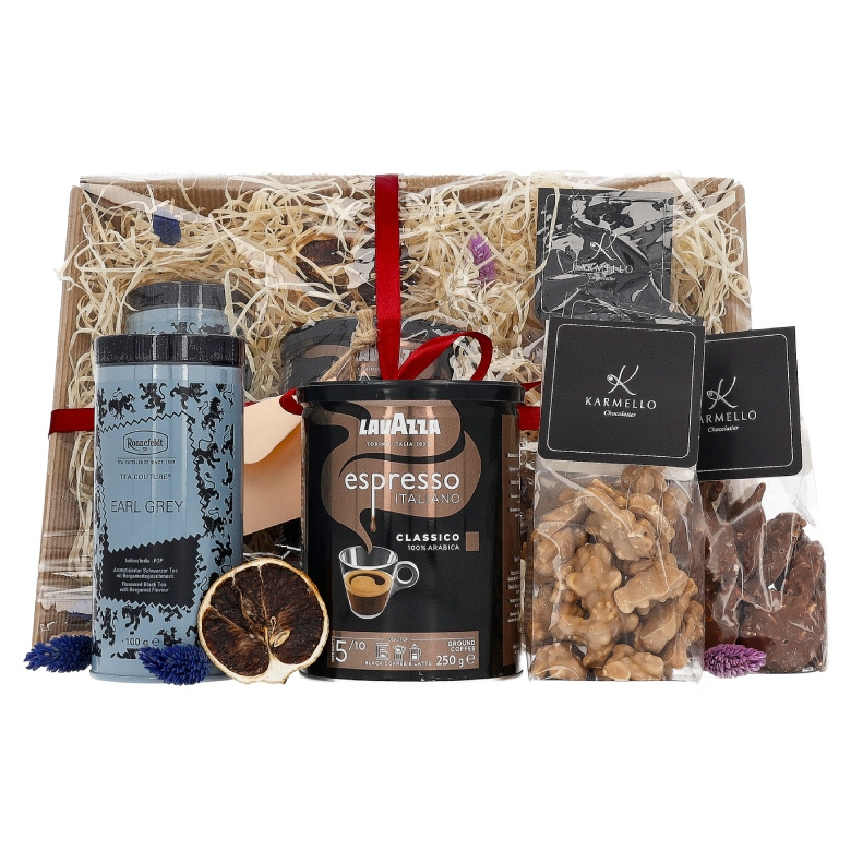 Zestaw prezentowy dla mężczyzny - Kawa, herbata i cluster Karmello
