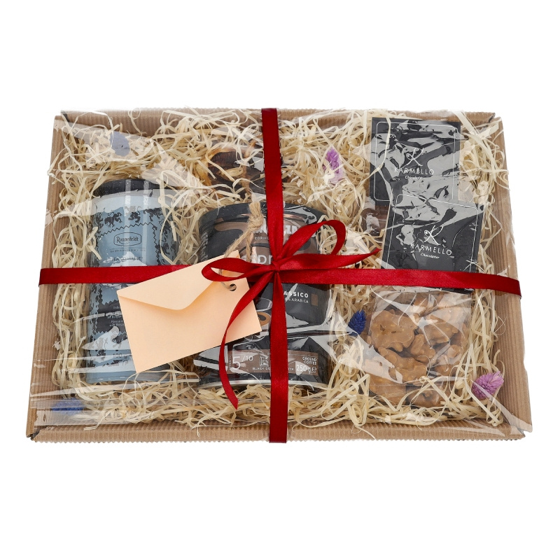 Zestaw prezentowy zamknięty jest w koszu wypełnionym atrakcyjnym materiałem zabezpieczającym oraz ozdobami. Zestaw jest zamknięty zgrzaną folią, a dla maksymalnego bezpieczeństwa jest dodatkowo zapakowany w karton. Dzięki temu zestaw prezentuje się elegancko i jest od razu gotowy do wręczenia.
