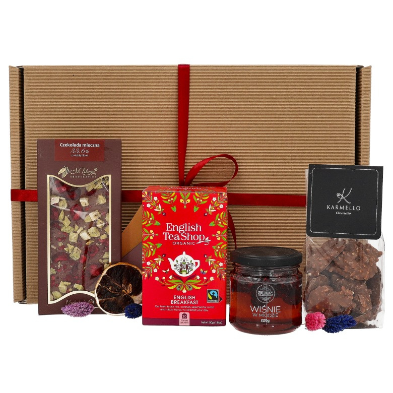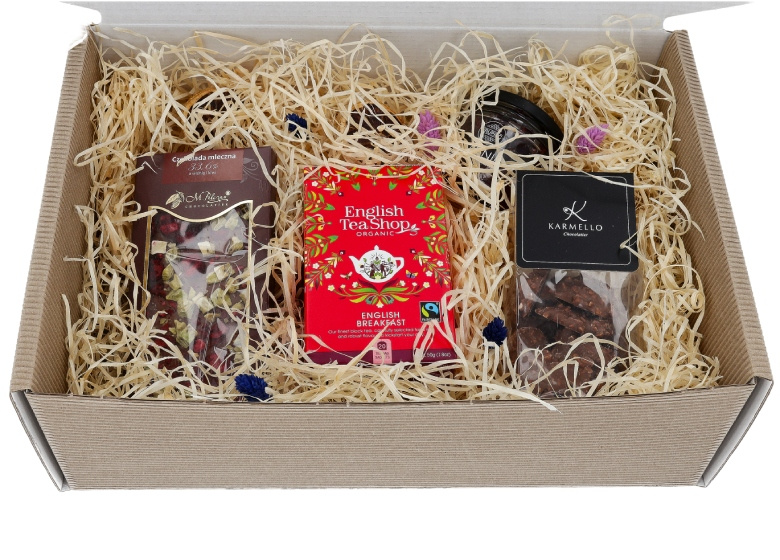 Zestaw prezentowy zamykany jest w karton wypełniony atrakcyjnym materiałem zabezpieczającym oraz ozdobami. Zamknięty zestaw dla maksymalnego bezpieczeństwa jest dodatkowo pakowany w karton. Dzięki temu zestaw prezentuje się elegancko i jest od razu gotowy do wręczenia.