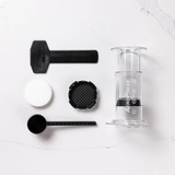 To małe, niepozorne urządzenie pozwala na eksperymentowanie z kawą - czas parzenia, temperatura wody czy stopień zmielenia kawy, to wszystko wpływa na końcowy smak naparu podanego w filiżance. Jednorazowo w AeroPresie można przygotować maksymalnie około 250 ml kawy, o tym jak przygotować kawę w AeroPresie pisaliśmy w naszej bazie wiedzy. W zestawie z AeroPressem Clear znajduje się: plastikowe sitko, mieszadełko, łyżeczka, 50 jednorazowych papierowych filtrów.