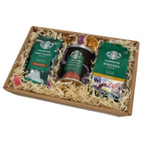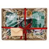 Zestaw prezentowy zamknięty jest w koszu wypełnionym atrakcyjnym materiałem zabezpieczającym oraz ozdobami. Zestaw jest zamknięty zgrzaną folią a dla maksymalnego bezpieczeństwa jest dodatkowo zapakowany w karton. Dzięki temu zestaw prezentuje się elegancko i jest od razu gotowy do wręczenia.