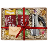 Zestaw prezentowy zamknięty jest w koszu wypełnionym atrakcyjnym materiałem zabezpieczającym oraz ozdobami. Zestaw jest zamknięty zgrzaną folią a dla maksymalnego bezpieczeństwa jest dodatkowo zapakowany w karton. Dzięki temu zestaw prezentuje się elegancko i jest od razu gotowy do wręczenia.