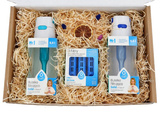 Zestaw prezentowy zamknięty jest w koszu wypełnionym atrakcyjnym materiałem zabezpieczającym oraz ozdobami. Zestaw jest zamknięty zgrzaną folią a dla maksymalnego bezpieczeństwa jest dodatkowo zapakowany w karton. Dzięki temu zestaw prezentuje się elegancko i jest od razu gotowy do wręczenia.